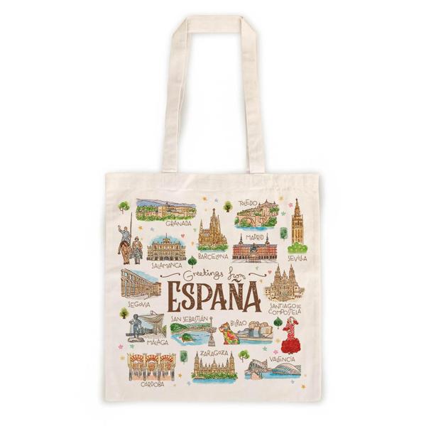 Sac cabas tissu España Aquarelle, décoré des grandes villes d’Espagne, pratique et élégant pour la vie quotidienne.